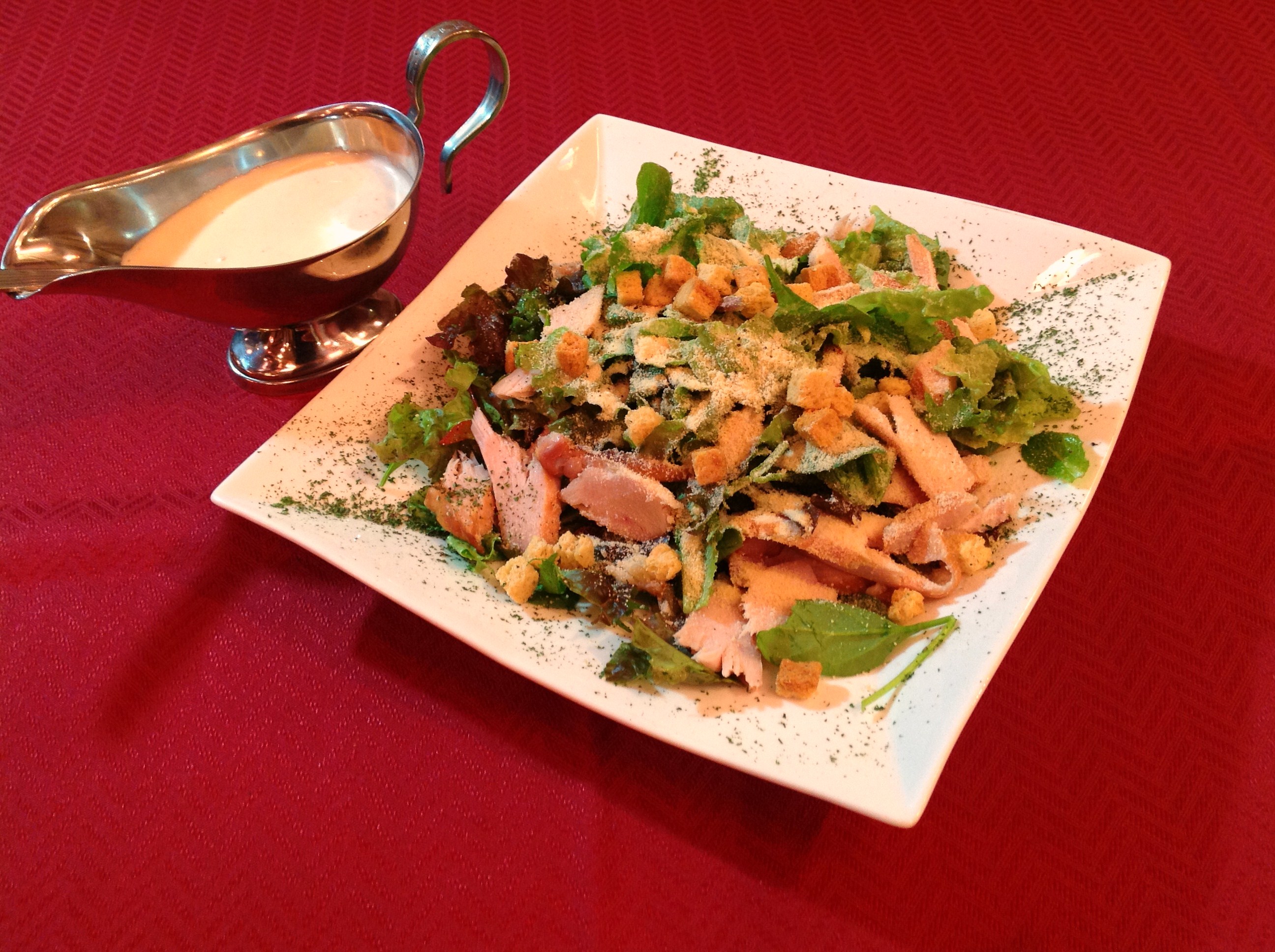 女性に喜ばれるシーザーサラダにスモークしたチキンを使用して