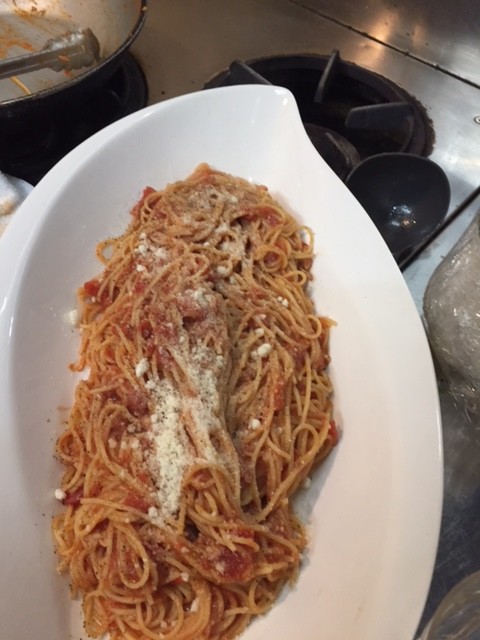 トマトソースのパスタですが、先日の自社会場「BASE」で賄いを作ろうと思い