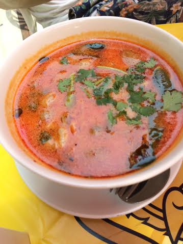 バンコクで1番最初に食べた、フォー的なもので魚のすり身とトマト、パクチーが入った優しいお味。
