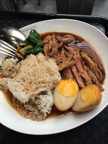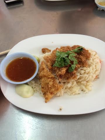 プラトゥナーム市場(バンコクで有名な飲食店専門のローカル巨大市場)の近くで食した、シンガポールライスにチキンフライが乗っかった特製香味ソースをかけた1プレート     これはコスパが良かった  120円