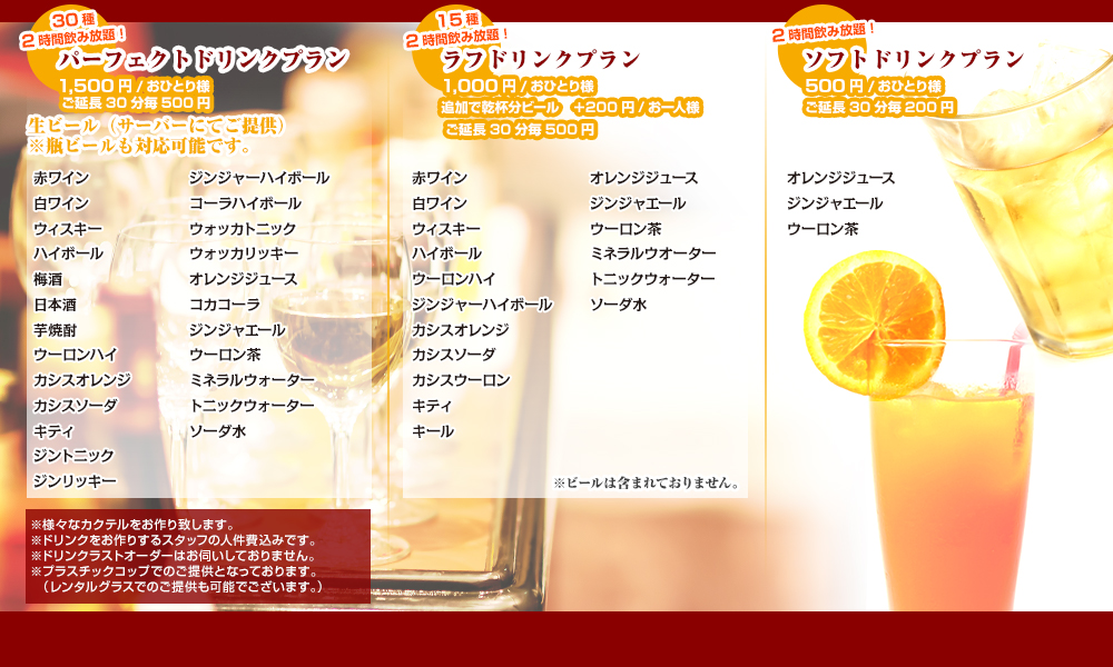 ★パーフェクトドリンクプラン★二時間飲み放題