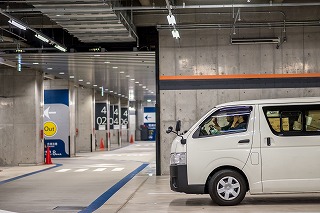 白く輝くTOYOTAのハイエースが地下1階の搬入口に到着致しました