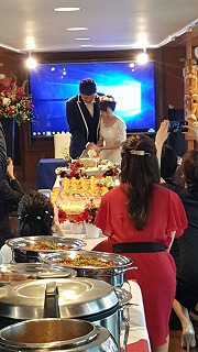 そして、桟橋から船への荷物の運搬、セッティングも終わり、無事素敵なウェディングケータリングを迎えることが出来ました。