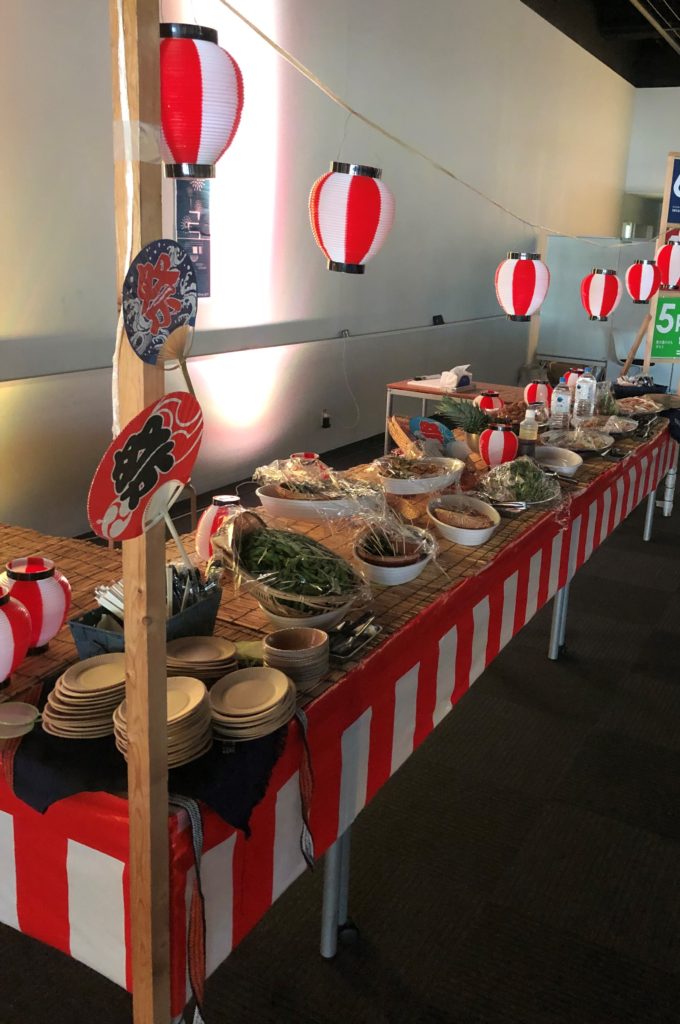 会場の都合上、装飾を減らしていますが夏祭りの雰囲気でていますかね?