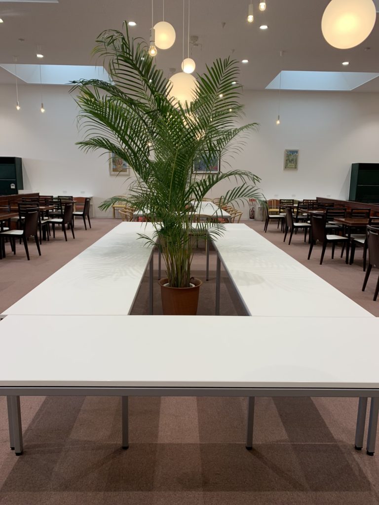 口の字のビュッフェ設置は稀ですが、真ん中に動かせない物があった為、