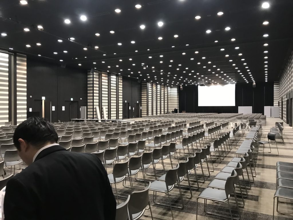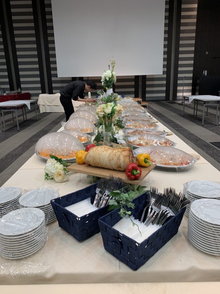 広い会場でしたので、半分をセミナーに半分をケータリングとし、