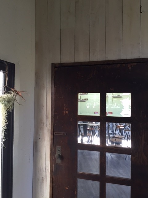 入口のショットですが、古材のドアを使用して重厚感を出させて頂きました♪