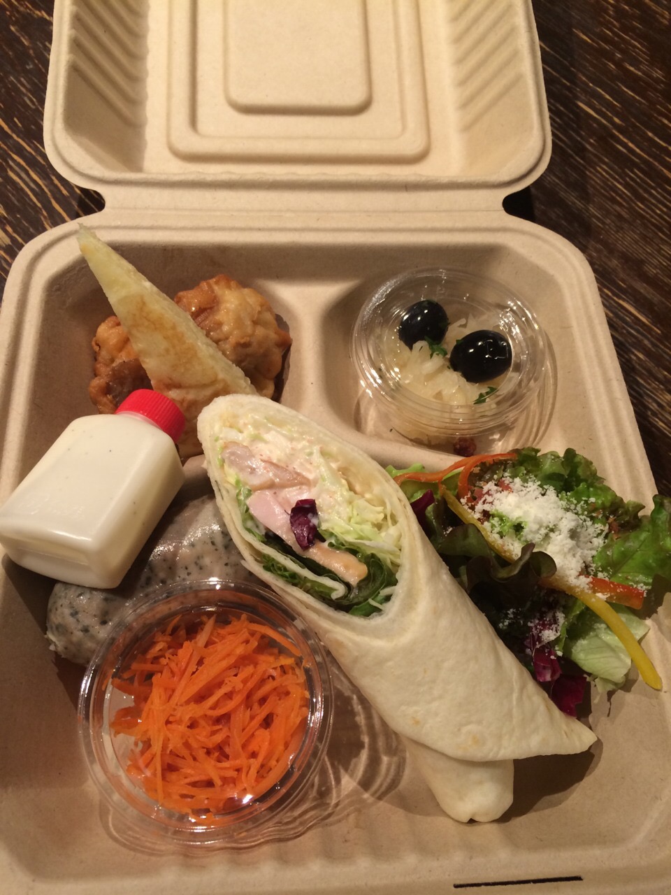こちらのランチボックスでの推し料理は手前に見えております、このラップサンド!
