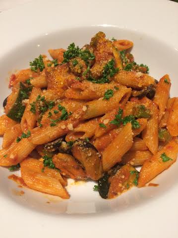 燻製薫るムール貝が主役のトマトソースの酸味がポイントのペンネです