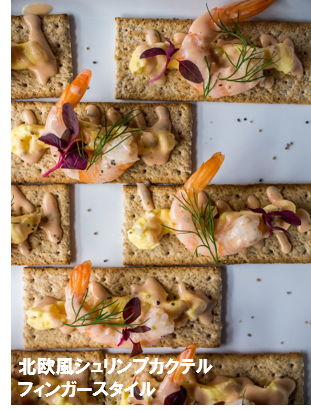 こちらはクラッカーに玉子を乗せて、エビと特製ソースをかけたオシャレな