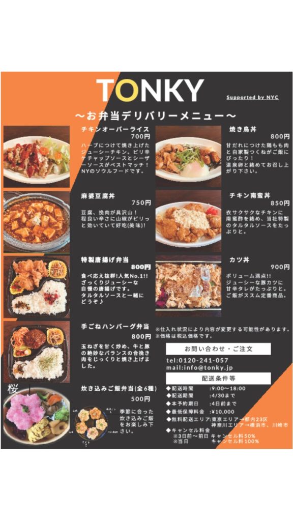 というときはTONKYケータリングのお弁当を事前に予約して頂ければ、