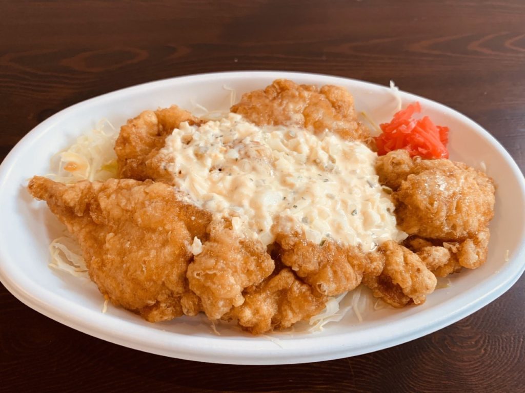 衣サクサクなチキンに南蛮酢を絡め、当店特製のタルタルソースをたっぷりとかけて